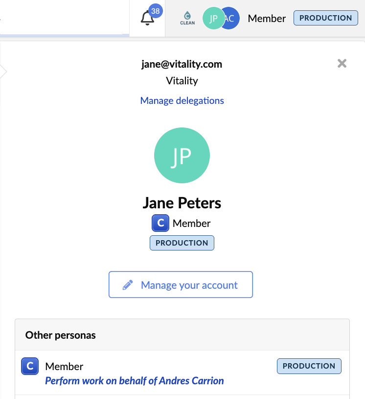 When you have an active delegation period, the navigation displays multiple avatars in the top right.